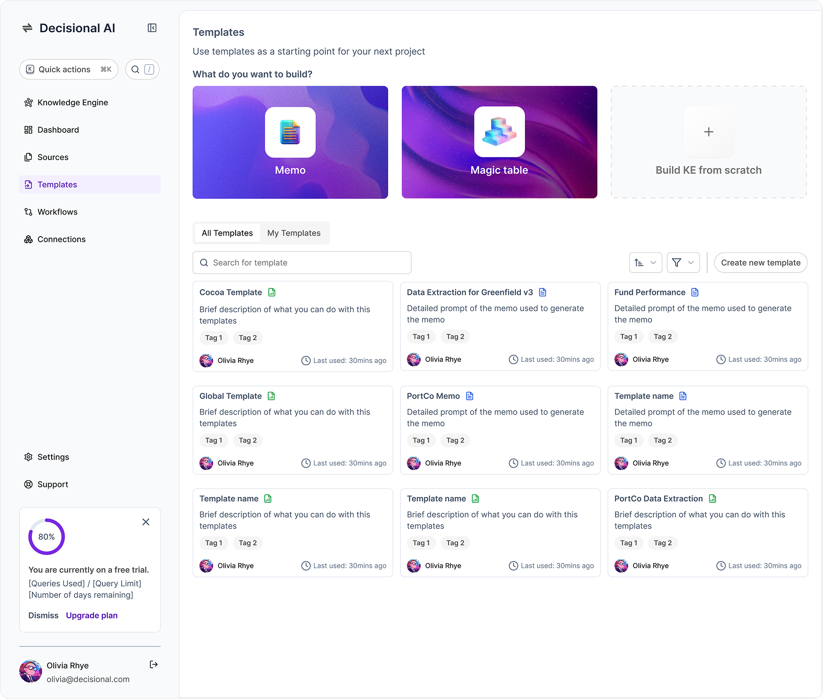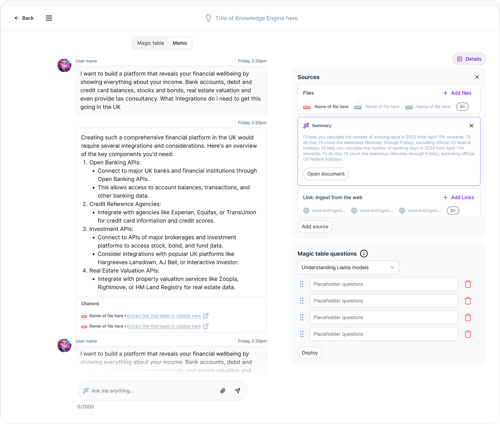 This allowed me to reimagined Decisional as a generative knowledge workspace, integrating AI Memo and Magic Tables as primary content types - Notion meets Bloomberg Terminal.