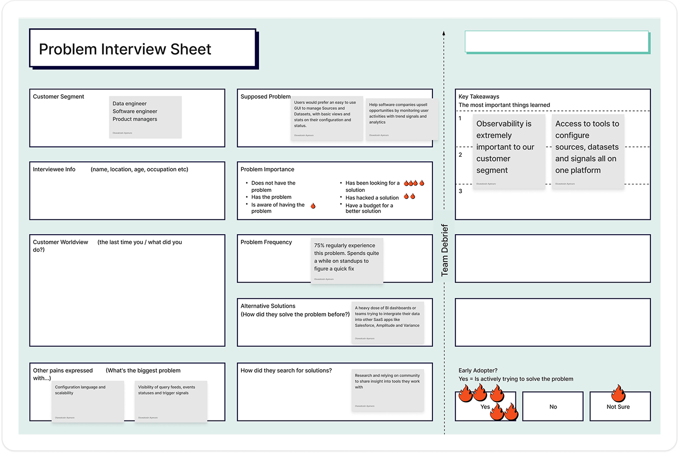 I asked 10 of high-flame users (🔥🔥🔥🔥🔥from focus groups) to walk me through their most recent pipeline troubleshooting experience, focusing on. Using think-aloud protocol and observational cues. I kept track of their pain point.