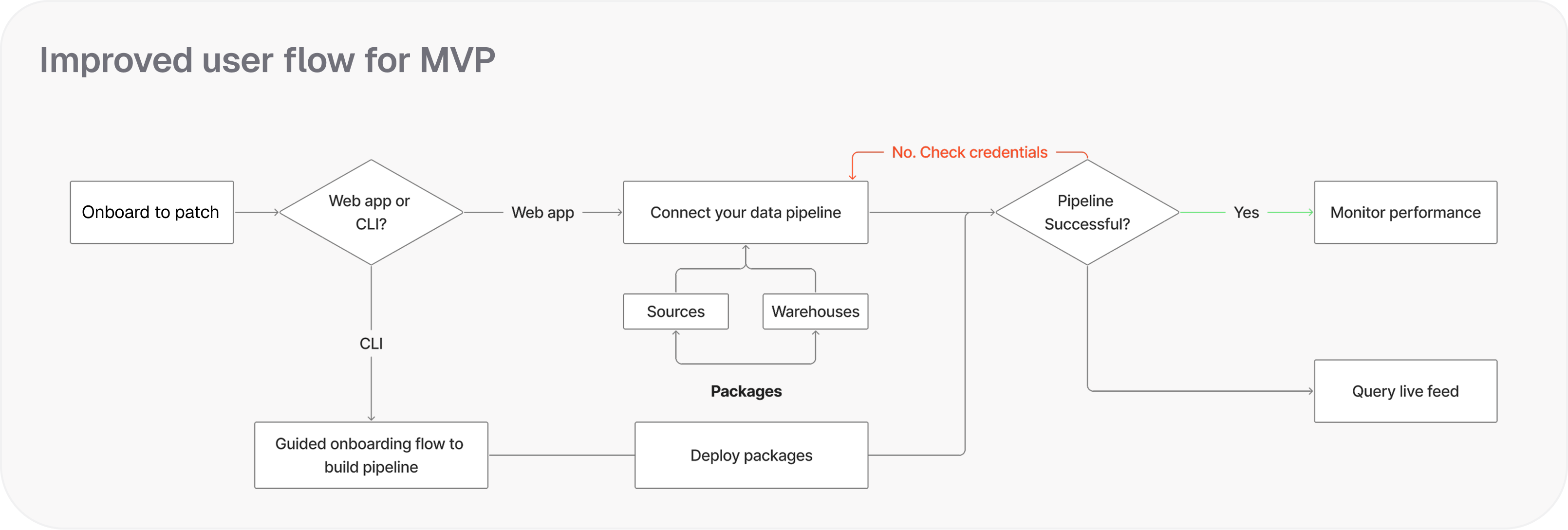 When I joined the Patch team, stakeholders presented me with a clear directive: "Users need better event notifications for their data pipelines." The engineering team was eager to build sophisticated trigger boards, and early customer conversations seemed to support this direction. Other problems considered were: